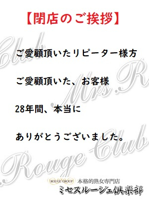 現在在籍の女性の方々も、ミセスルージュ倶楽部とともに、風俗業界を引退される方々が多いと聞いております。